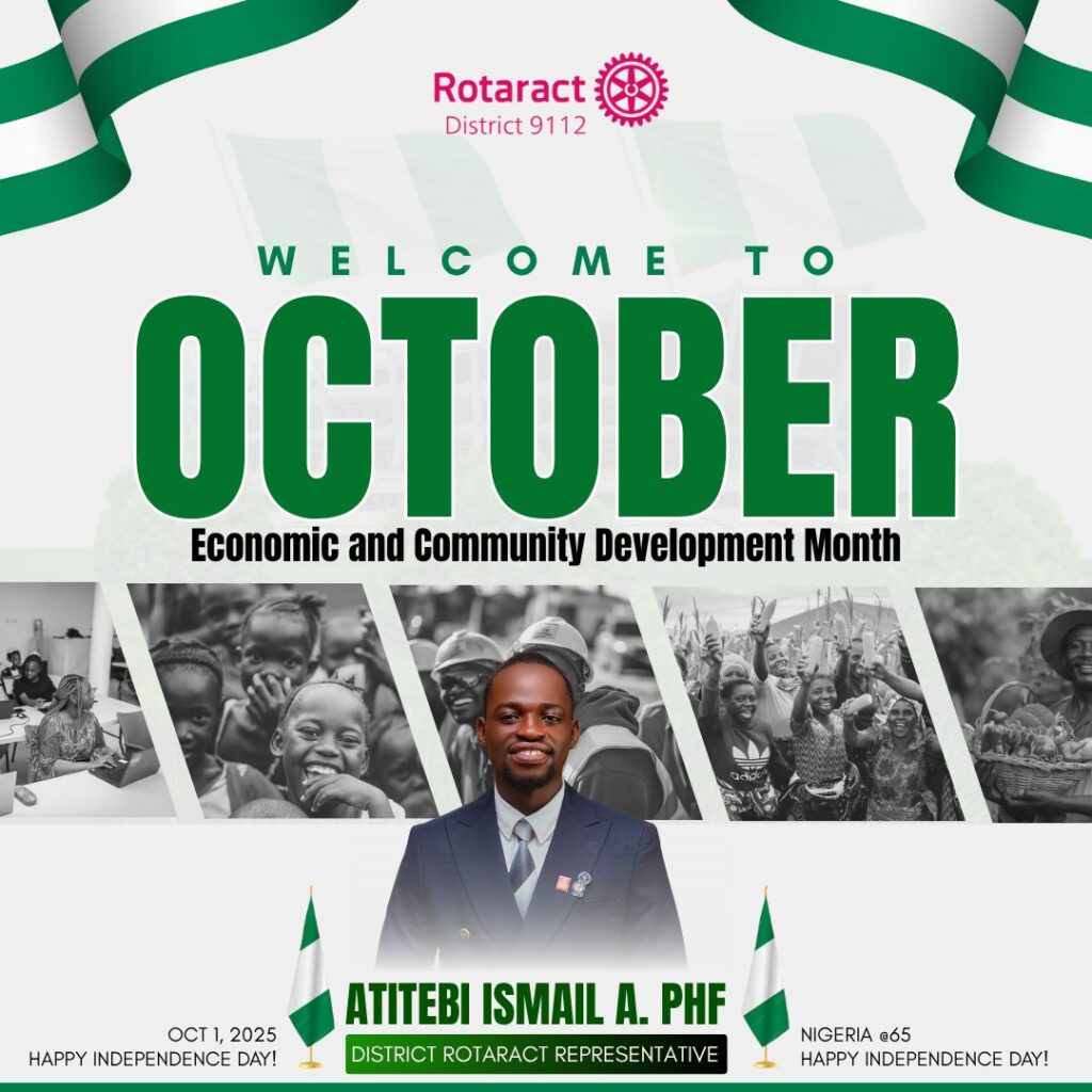 Each month in Rotary carries a unique theme, but October strikes at the very foundation of human dignity—the right of every individual not just to survive, but to thrive. Economic and Community Development Month calls us to think beyond temporary charity and embrace projects that leave a lasting impact. Every initiative that uplifts a market woman, empowers a young person, or revitalizes a community is more than service—it is an investment in a better tomorrow.